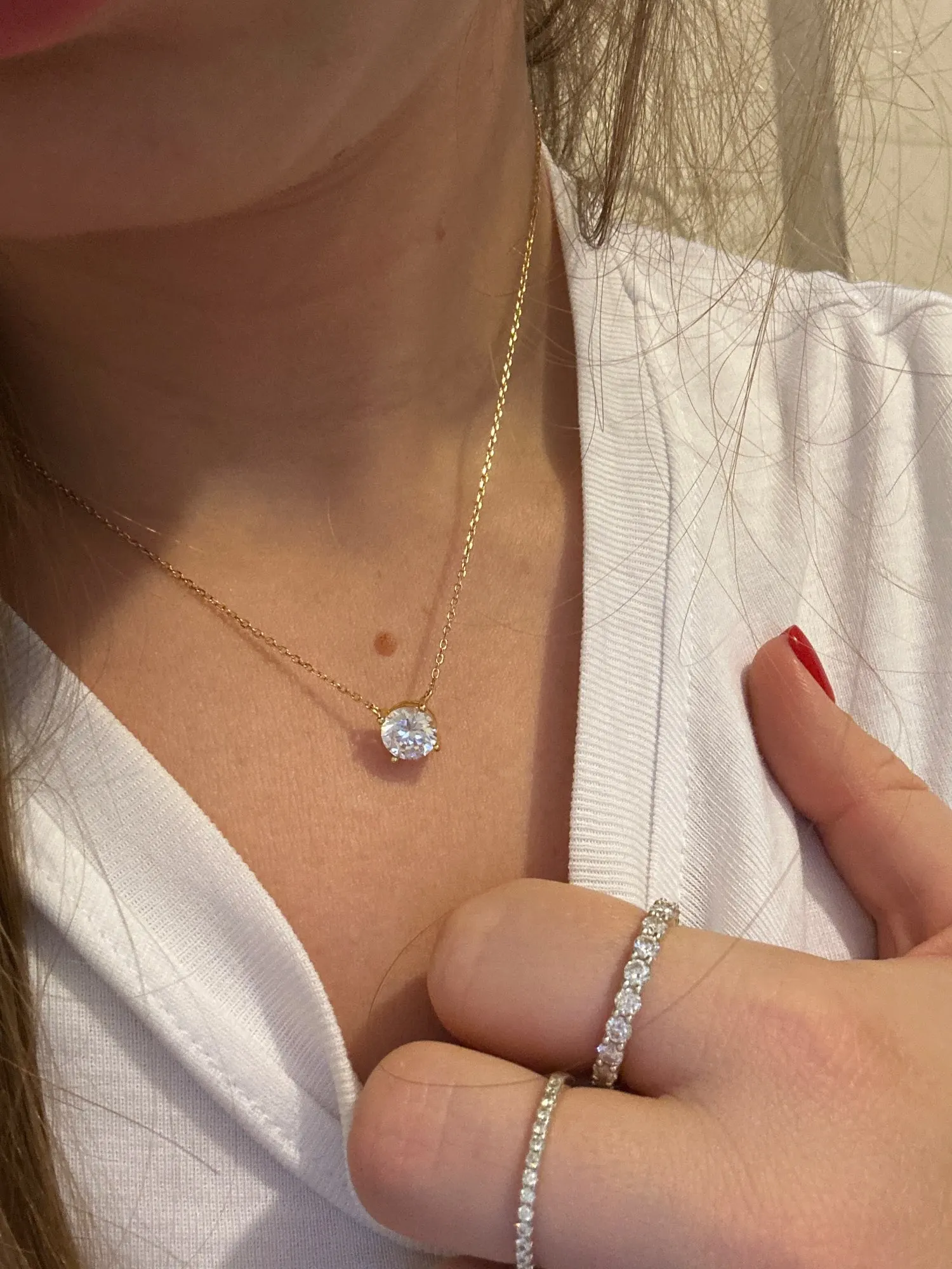The Celeste Necklace features a brilliant D-color, VVS1 moissanite solitaire—cut to perfection for exceptional sparkle. Set in 925 Sterling Silver and available in Silver, Gold-Plated, or Rose Gold-Plated finishes, it’s a timeless piece designed to shine brighter and last forever.