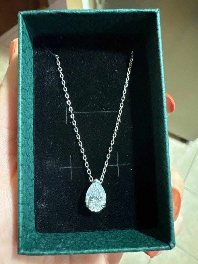 What makes the Celeste Moissanite Pear Necklace special?
