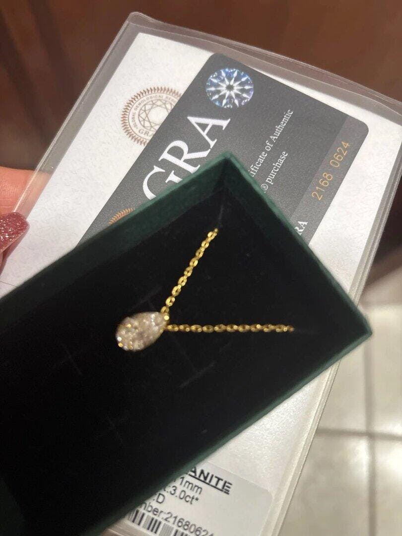 GRA (Gemological Research Association) is a third-party certification that verifies the authenticity and quality of moissanite gemstones. When you choose the GRA-certified option, your necklace comes with an official GRA certificate, ensuring:
